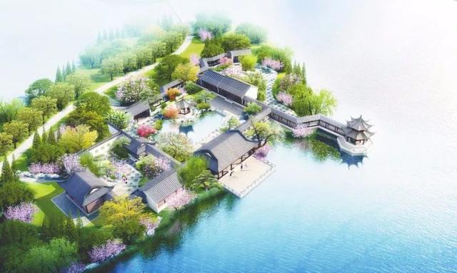 “目對(duì)魚鳥,芳草萋萋”。湖中芳洲,面水筑園,引水入園,園內(nèi)園外水木明瑟。